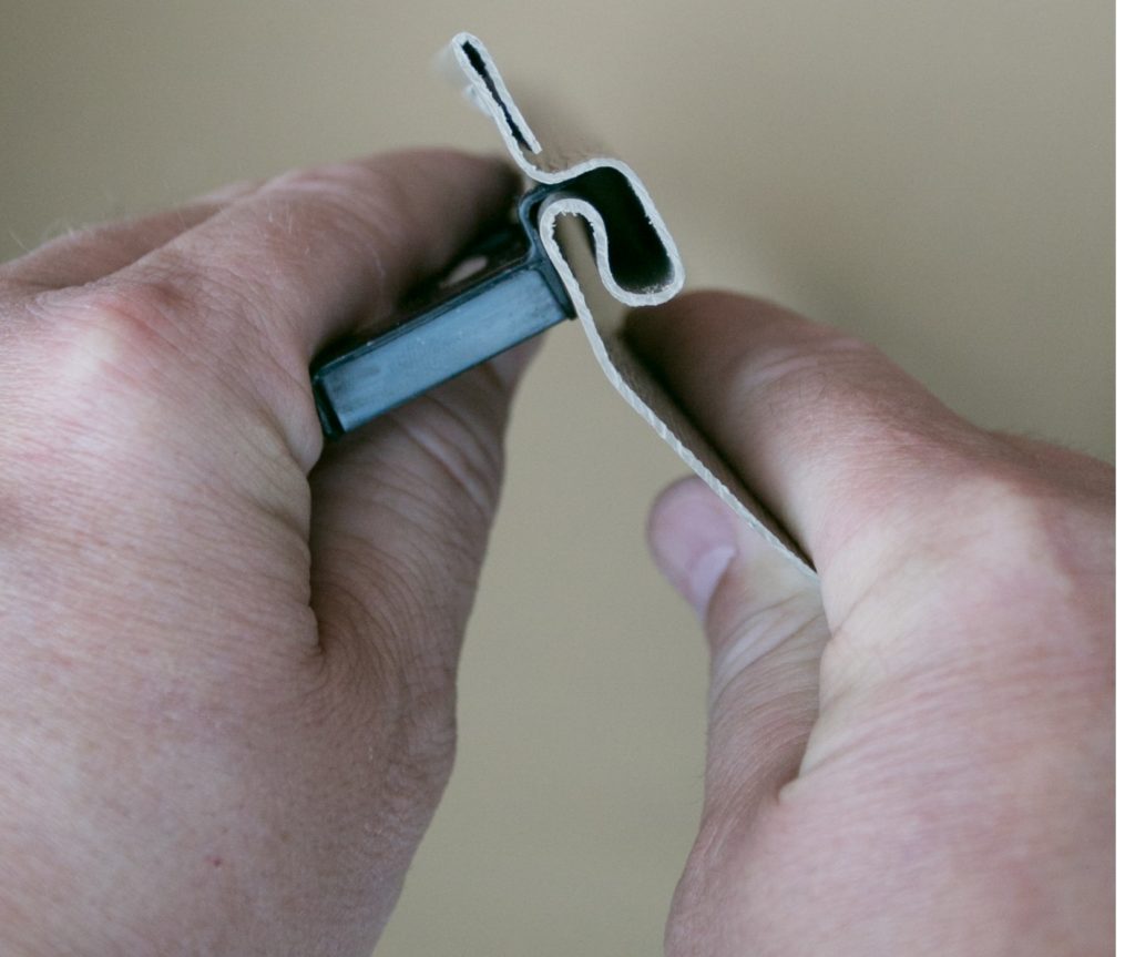Insert the Glide Lock Siding Hanger into the groove in the back of the siding nail hem as seen above